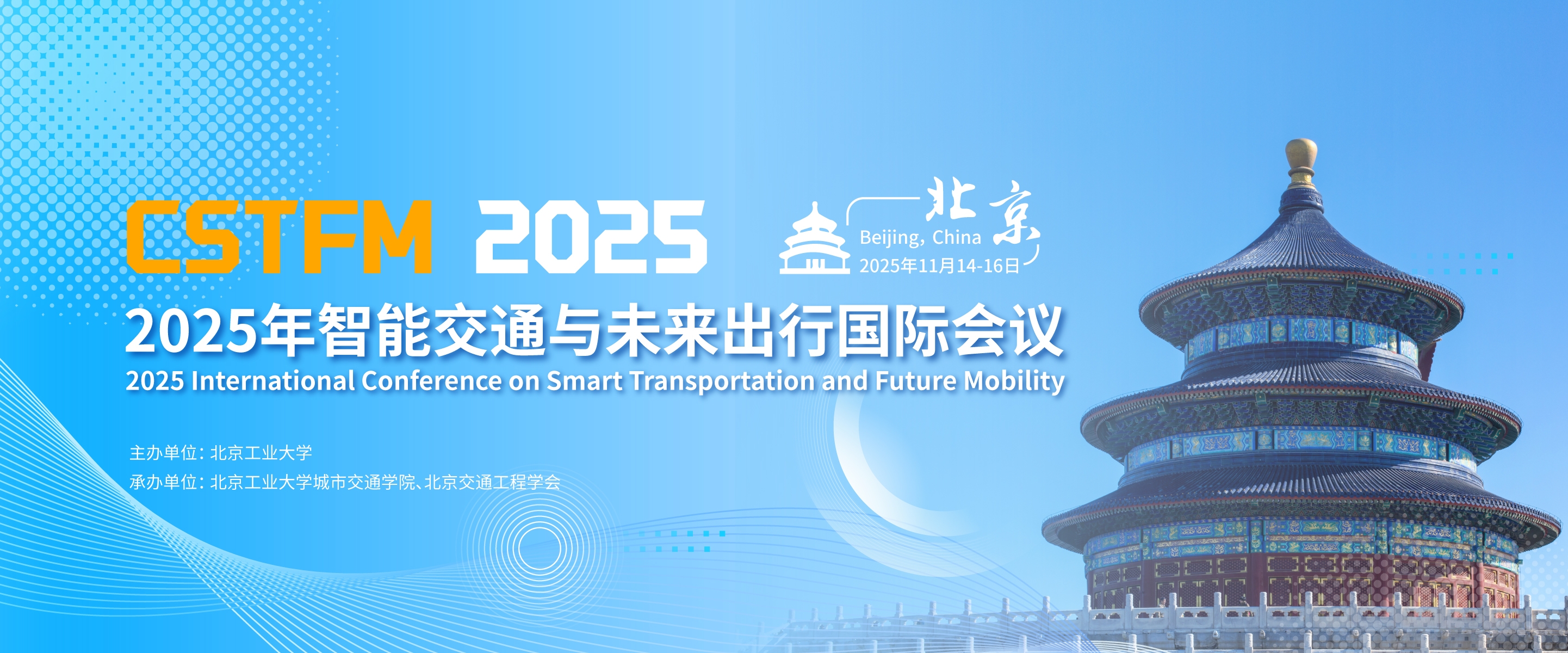 2025年智能交通与未来出行国际会议由北京工业大学主办,北京工业大学城市交通学院、北京交通工程学会承办,将于2025年11月14至16日在中国北京召开。更多会议信息请访问官方网站:www.cstfm.org