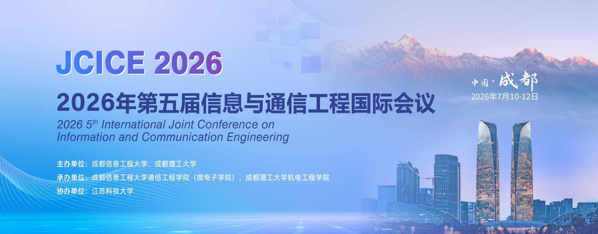 2026年第五届信息与通信工程国际会议由成都信息工程大学、成都理工大学联合主办,成都信息工程大学通信工程学院(微电子学院)、成都理工大学机电工程学院共同承办,江苏科技大学协办,将于2026年7月10至12日在四川成都召开。更多会议信息请访问官方网站:www.jcice.org